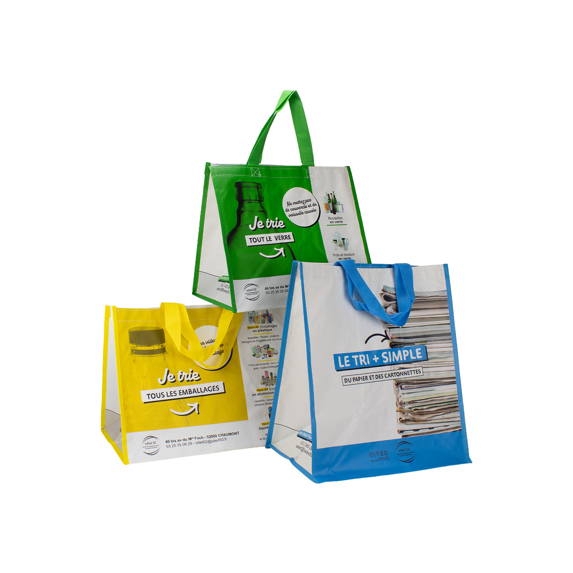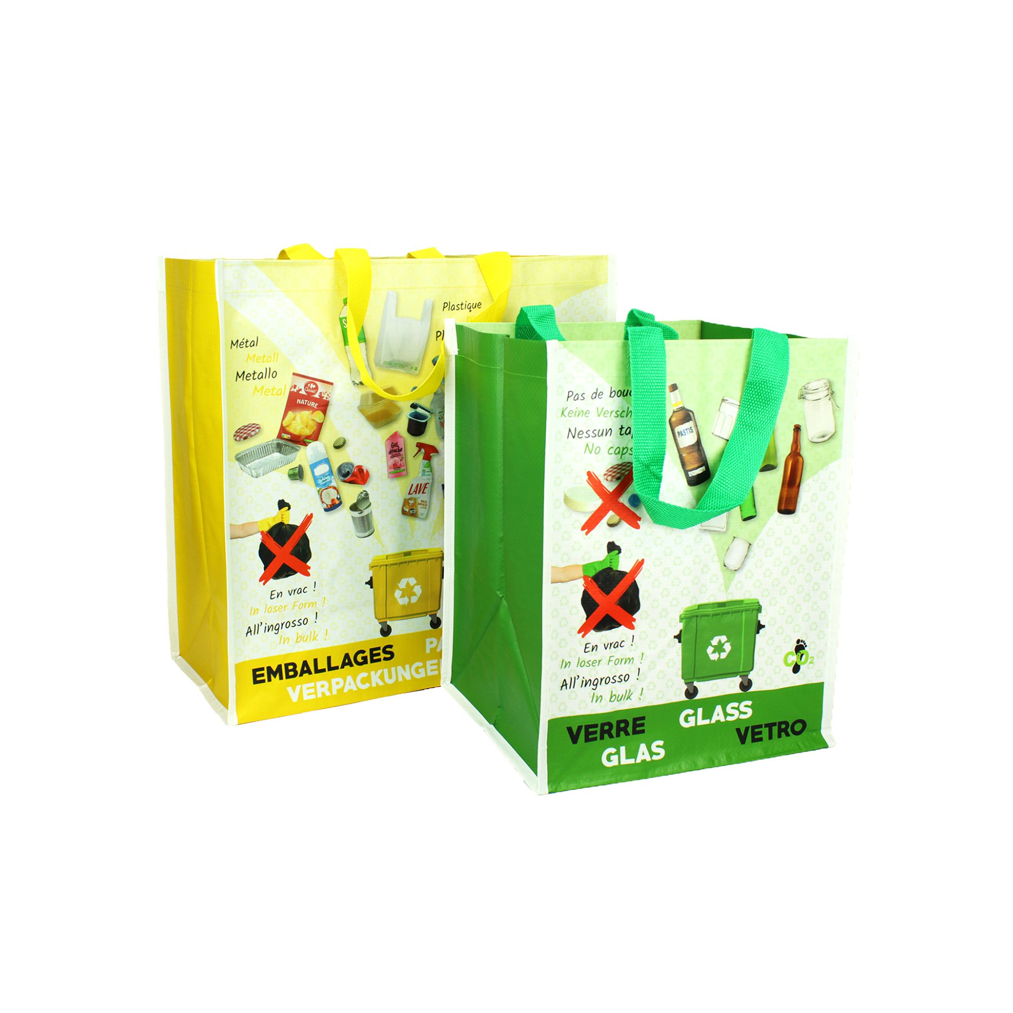 Nos sacs de précollecte sont en polypropylène tissé, un matériau à base de recyclé, recyclable, durable dans le temps, résistant à l’usure et au poids, lavable. Nos modèles sont ergonomiques avec des poignées renforcées pour faciliter le transport jusqu’au point d'apport volontaire.