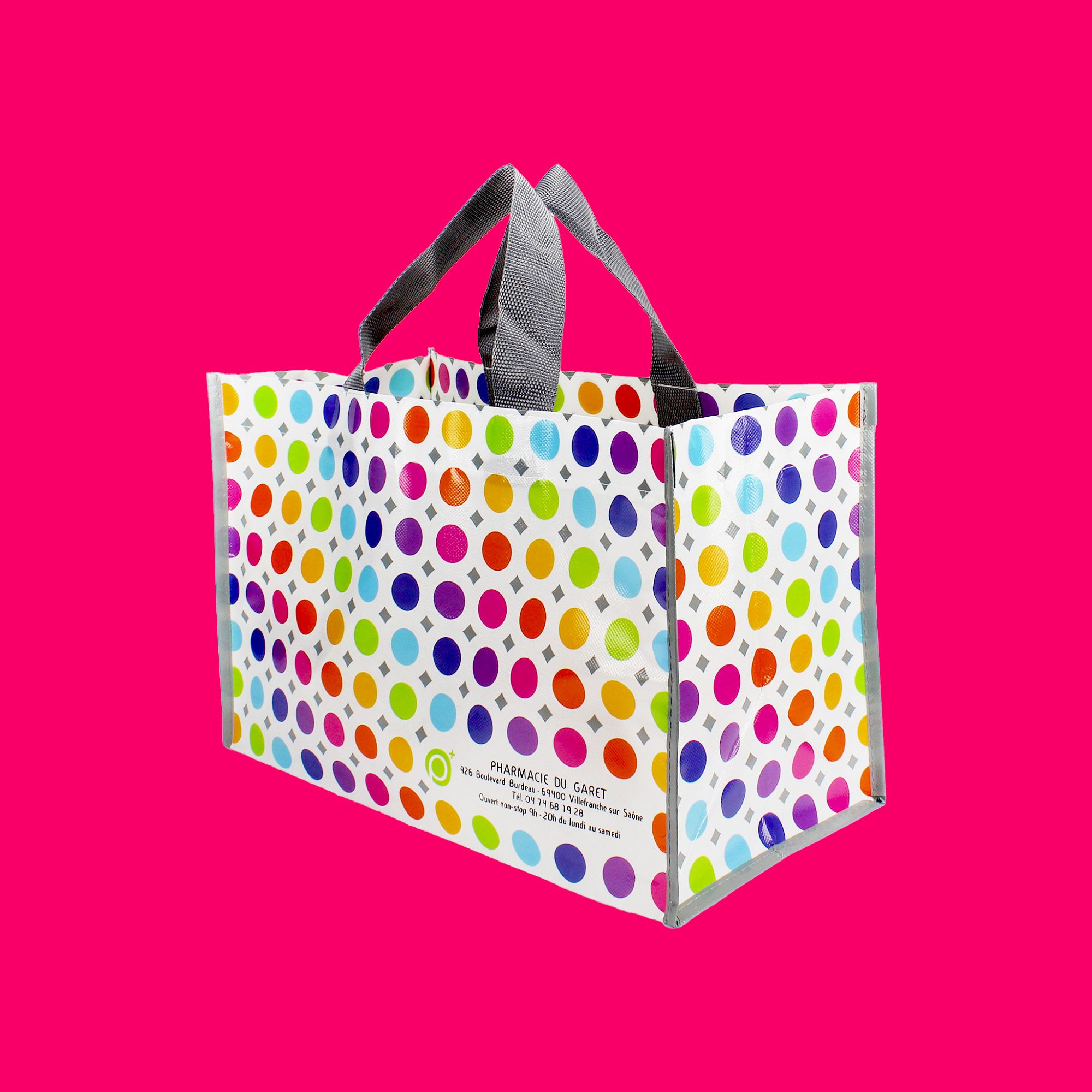 Nos sacs cabas en polypropylène non tissé (PP) sont pratiques, robustes, économiques et 100 % personnalisables. Les sacs shopping en textile non tissé ou « intissé » sont élégants, de par la souplesse de la toile. Parfaits pour les enseignes, les marques, les centres commerciaux, ou encore les hôtels, ils sont largement utilisés et réutilisés par vos clients, et offrent ainsi un support de communication efficace. Le sac cabas en pp non tissé non laminé est une alternative réutilisable au sac papier kraft, avec un budget maîtrisé. Il s’adapte au retail aussi bien qu’à l’évènementiel.