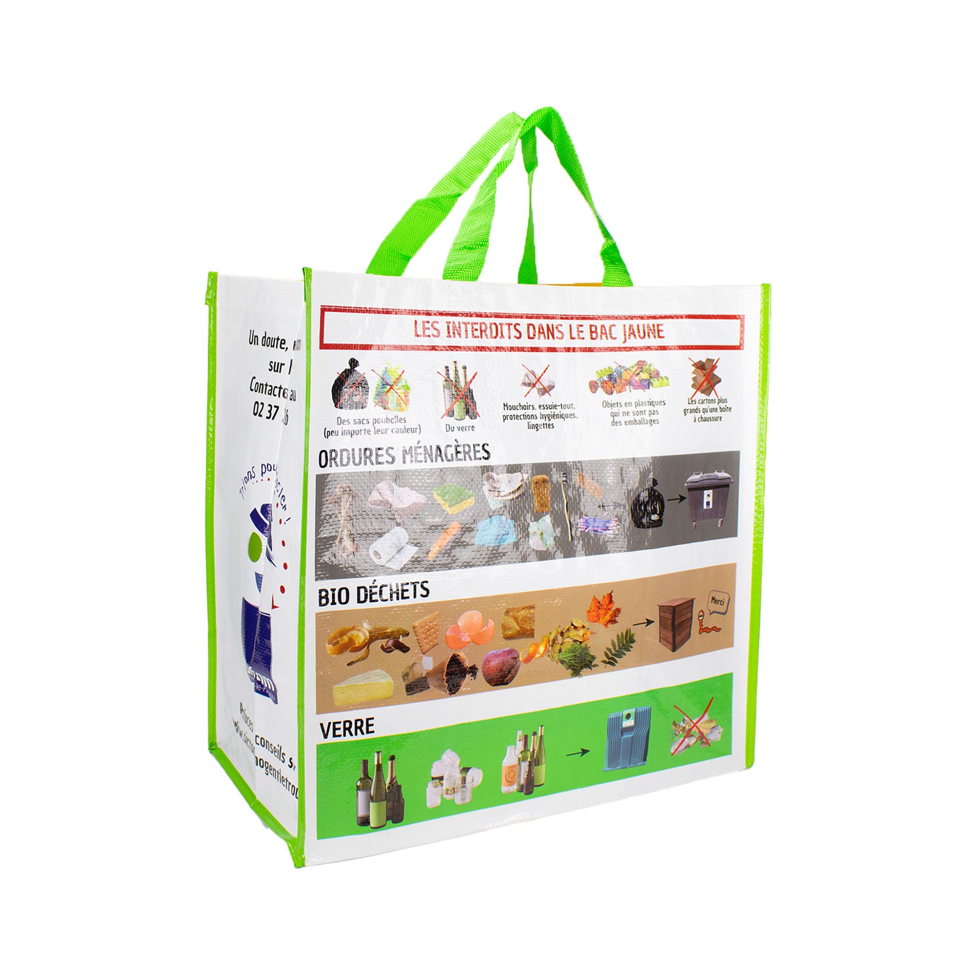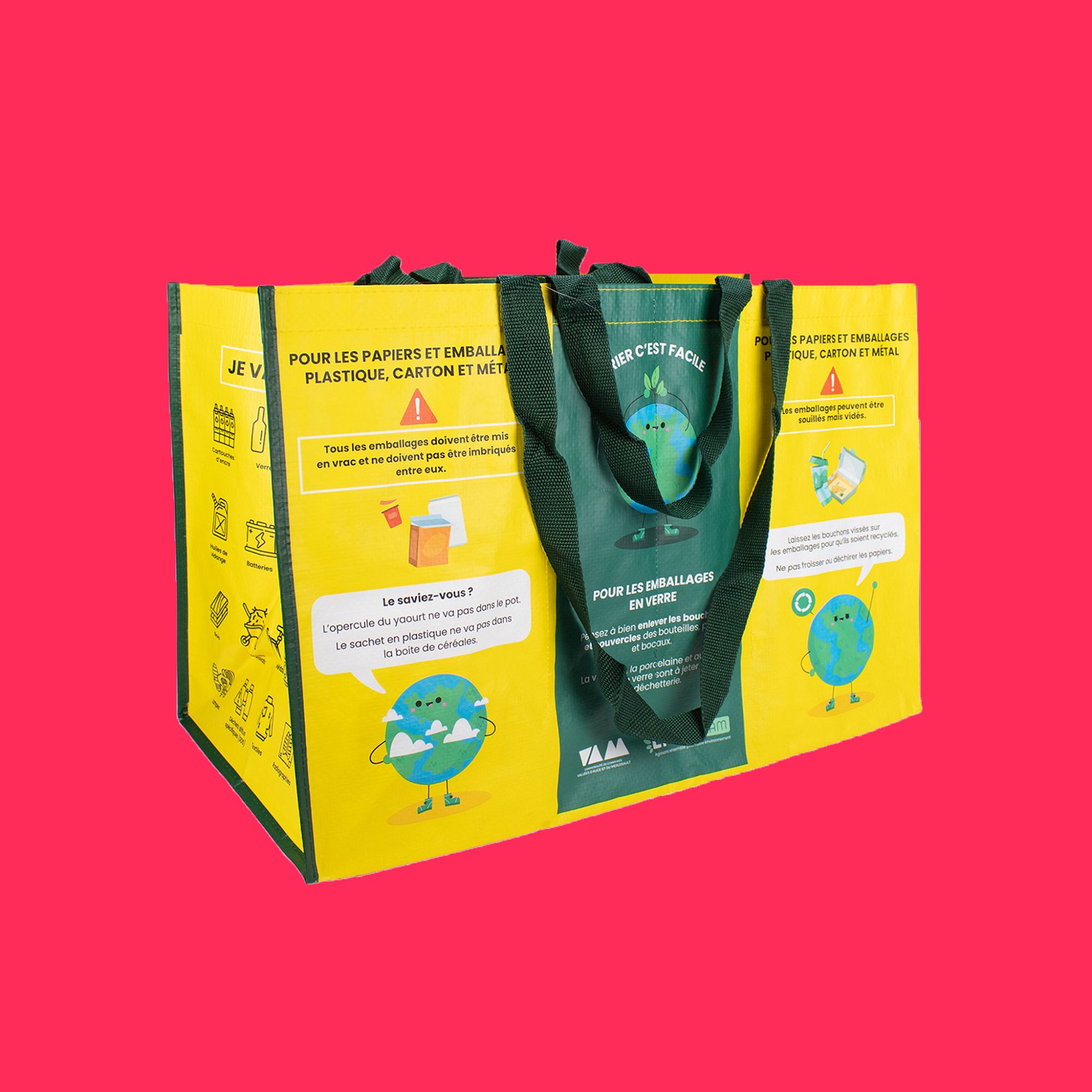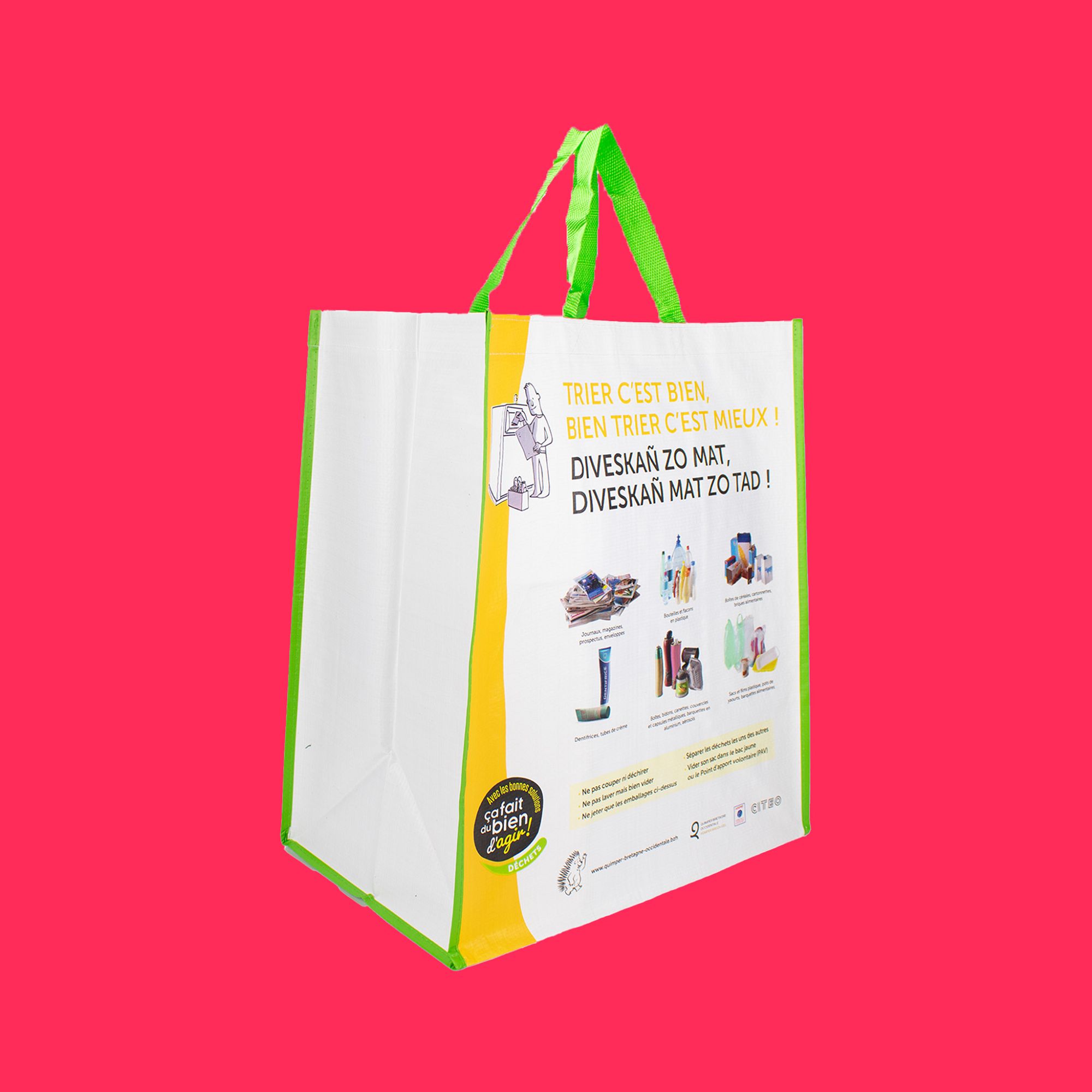 Résistant aux lourdes charges, durable dans le temps, réutilisable de nombreuses fois et facilement nettoyable à l’éponge : le pp tissé est le matériau idéal pour vos sacs de tri des déchets. Vous êtes une collectivité publique, une résidence de tourisme ou encore un établissement d‘hôtellerie de plein air, communiquez efficacement vos consignes de tri sur vos sacs imprimés en quadrichromie. Le sac de tri sélectif est l’outil indispensable pour aider les ménages à trier leurs déchets et les transporter vers un point d’apport volontaire (PAV).