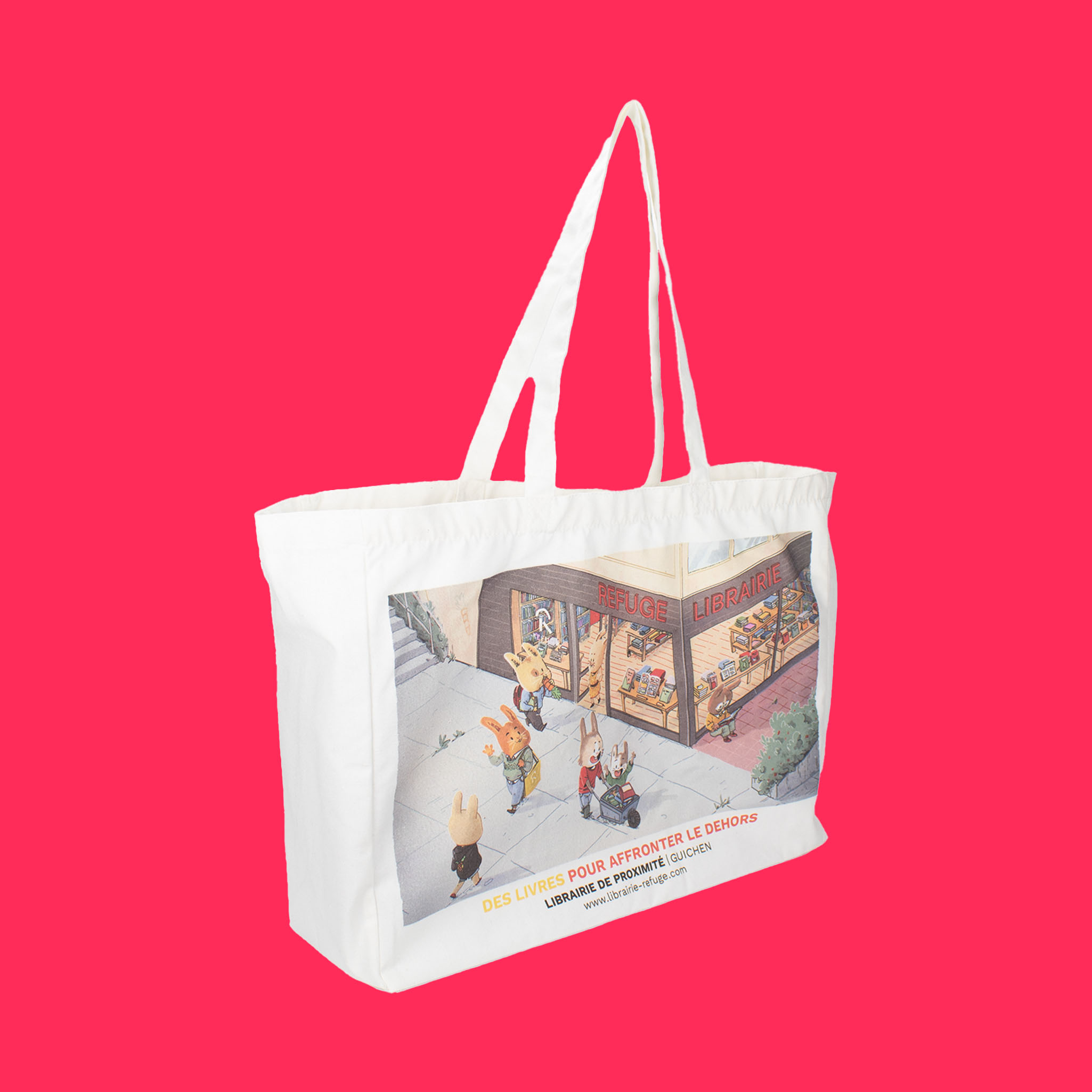 Vous êtes une agence immobilière, un cuisiniste, une boutique, une épicerie fine, un magasin bio, une bibliothèque, un festival, une grande surface, un concept store ou encore une marque engagée ? Nos tote bags publicitaires sont le support de communication idéal, utile et dans l’air du temps. Le tote bag coton naturel s’affiche en magasin, lors d’un salon professionnel, à la plage, pour vos événements média, pour vos manifestations culturelles, pour vos opérations street marketing. Le tote bag en tissu réutilisable est un incontournable : sac à provisions, sac à livres, sac mode, sac cadeau client, goodies… - les usages sont multiples.