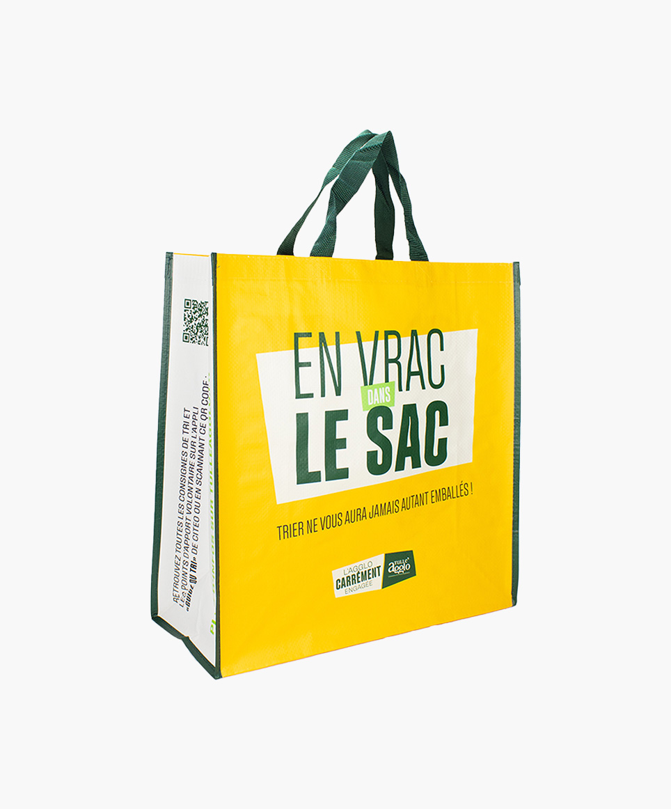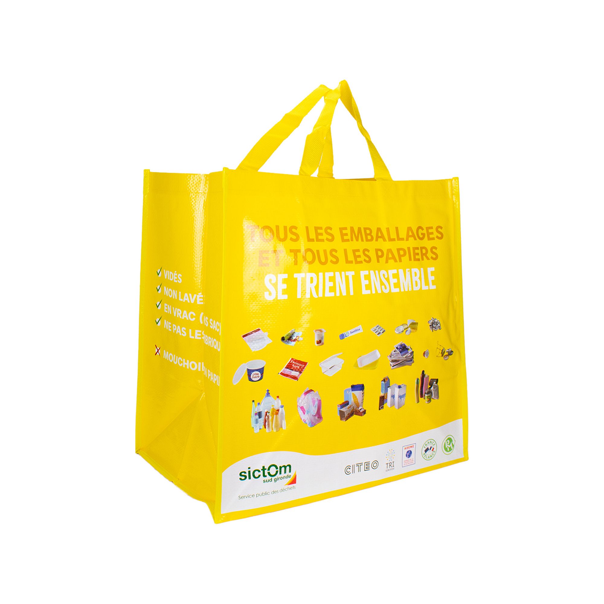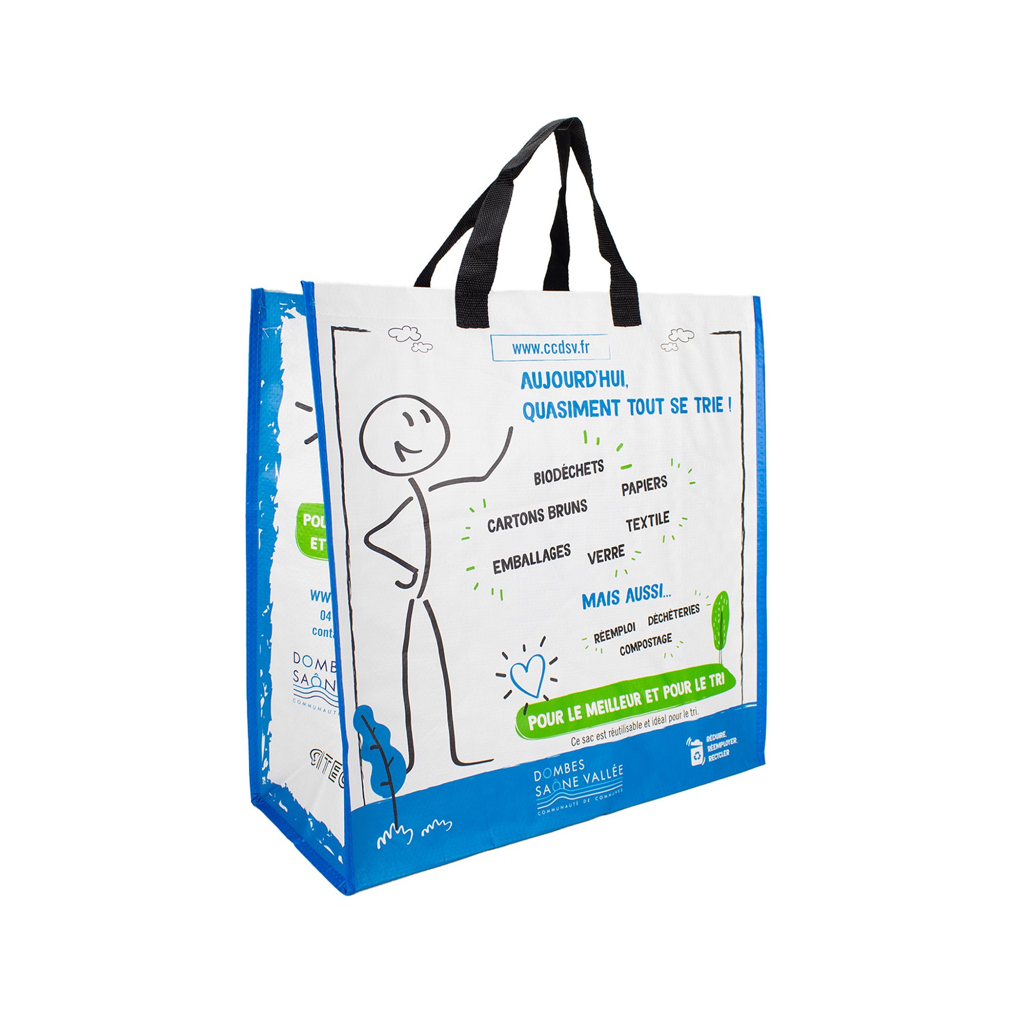Résistant aux lourdes charges, durable dans le temps, réutilisable de nombreuses fois et facilement nettoyable à l’éponge : le pp tissé est le matériau idéal pour vos sacs de tri des déchets. Vous êtes une collectivité publique, une résidence de tourisme ou encore un établissement d‘hôtellerie de plein air, communiquez efficacement vos consignes de tri sur vos sacs imprimés en quadrichromie. Le sac de tri sélectif est l’outil indispensable pour aider les ménages à trier leurs déchets et les transporter vers un point d’apport volontaire (PAV).